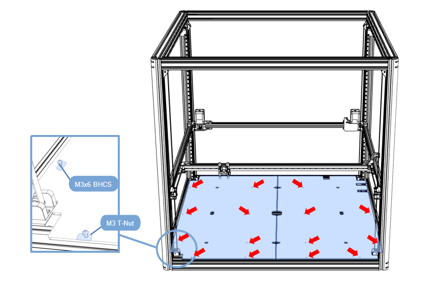 Use the M3x30 SHCS screws to tighten, and screw them to the bottom;