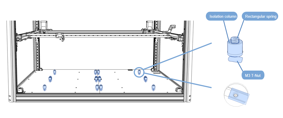 Put the spring through the black nylon isolation column and place it in the acrylic plate groove;