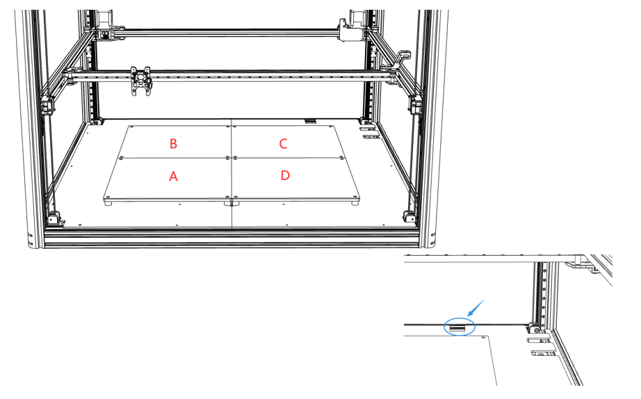 And mark the power cord and thermistor wire of the hot bed with sticky notes according to the diagram for later wiring;