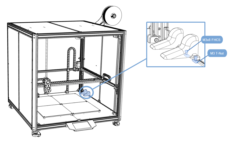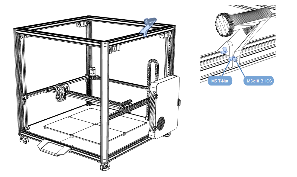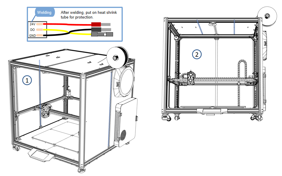 Route the camera power cable along the profile groove and install the profile groove cover,need to connect USB extension cable to the display interface(Because the camera cable is not long enough, you need to use a USB extension cable).