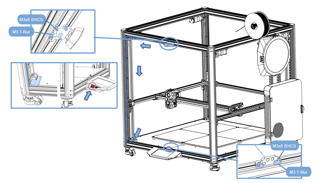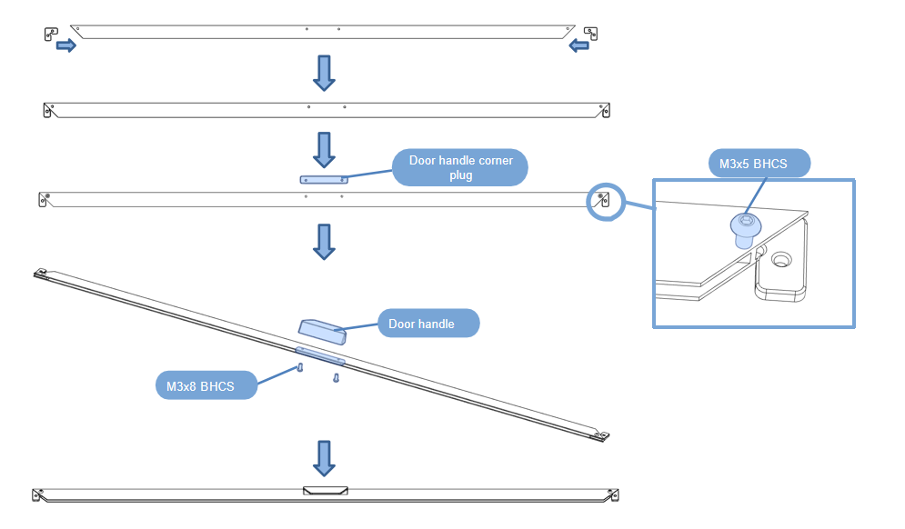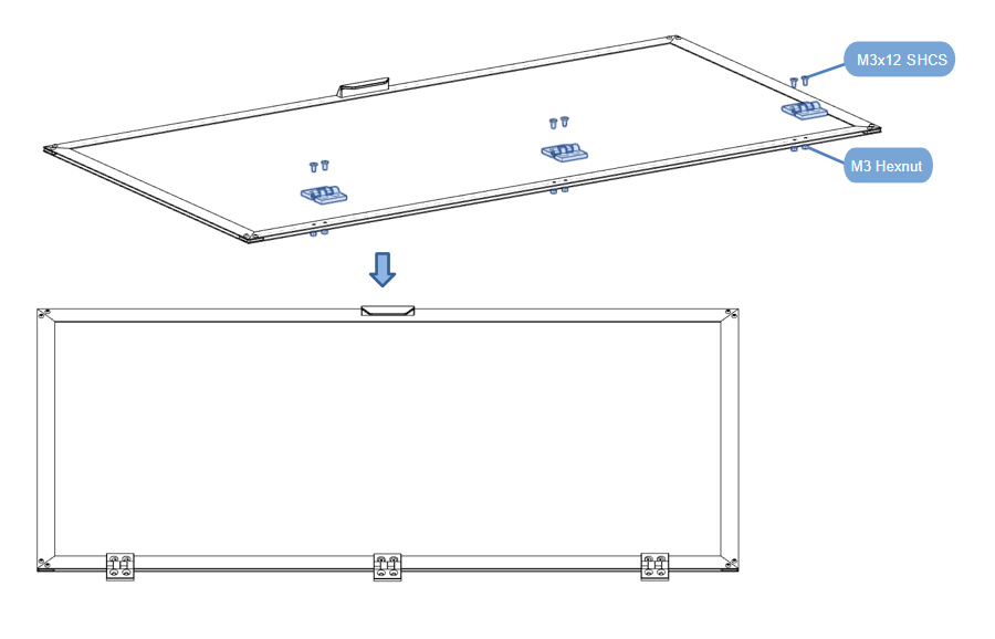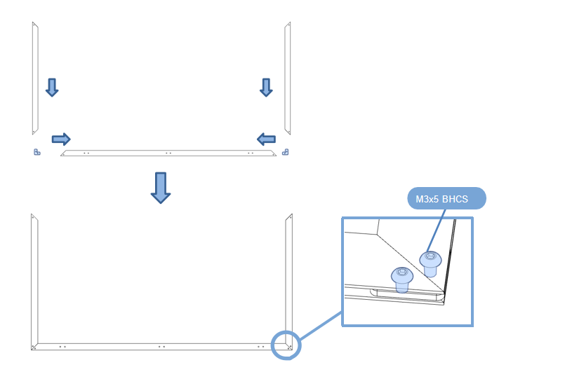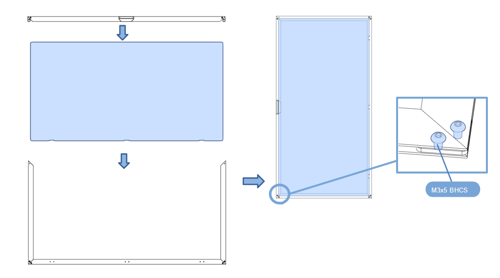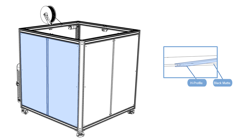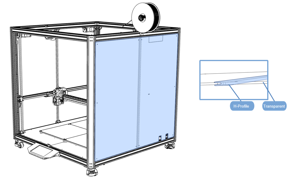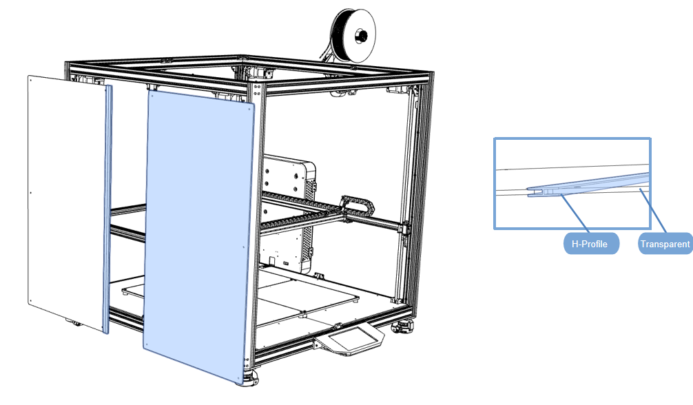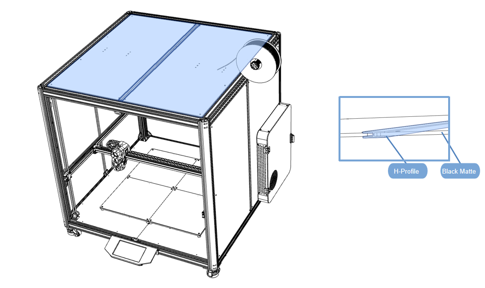 Insert the acrylic sheet into both sides of the profile as shown in the picture;
