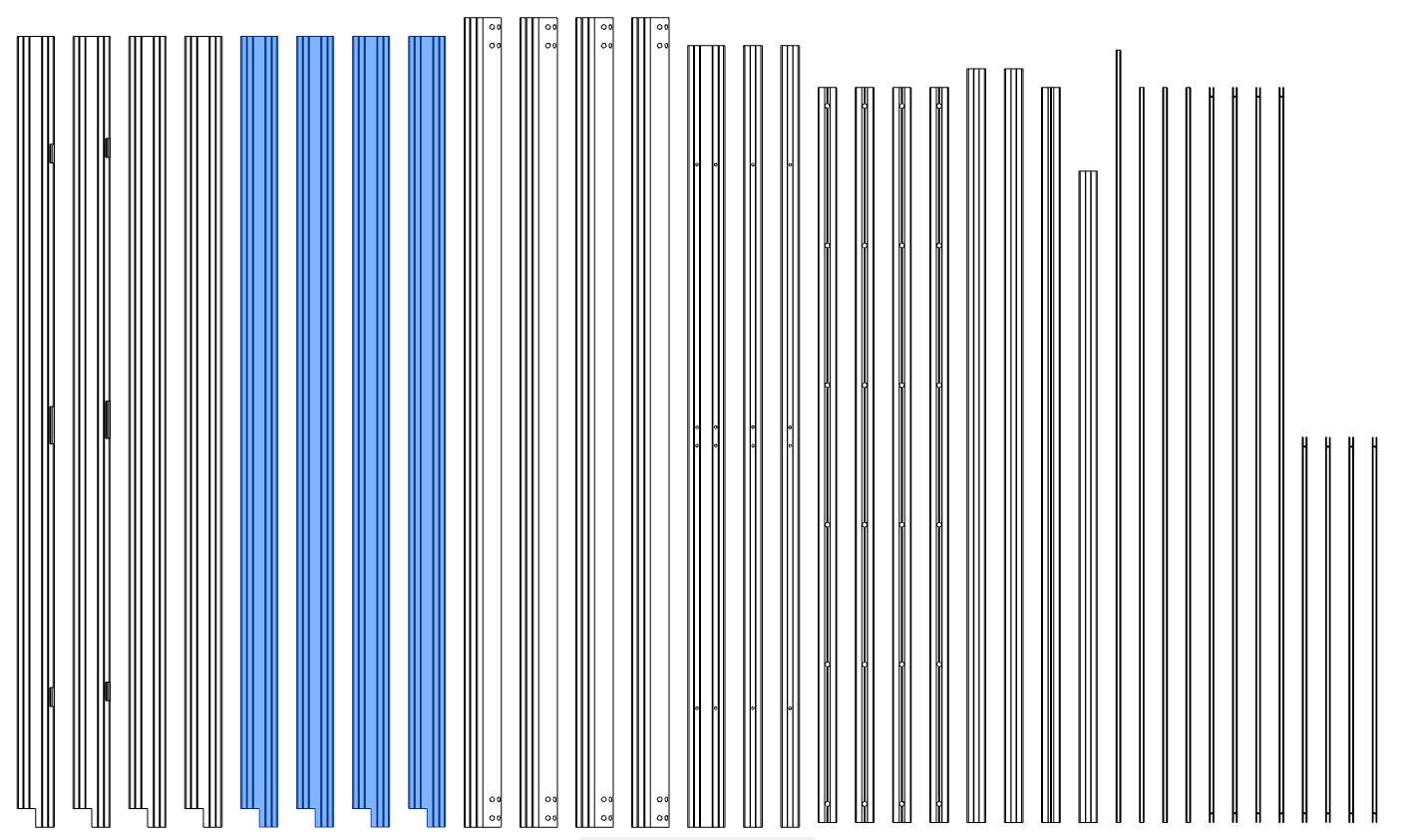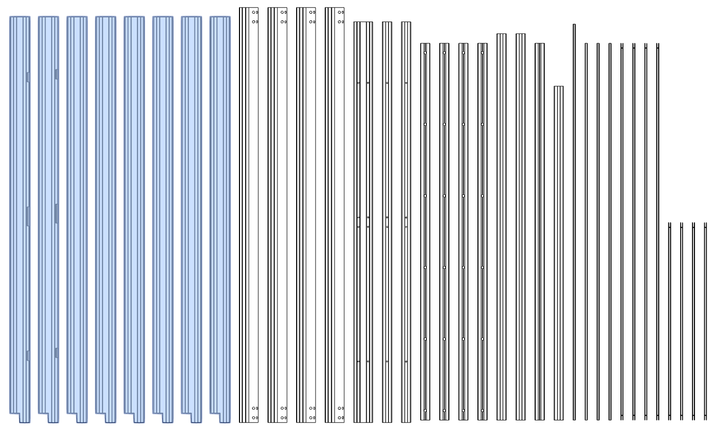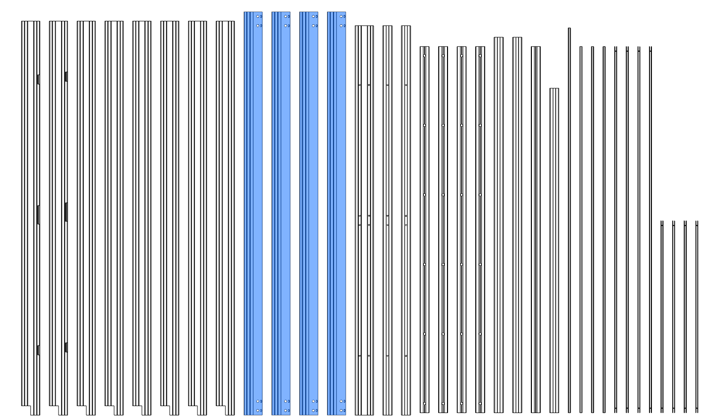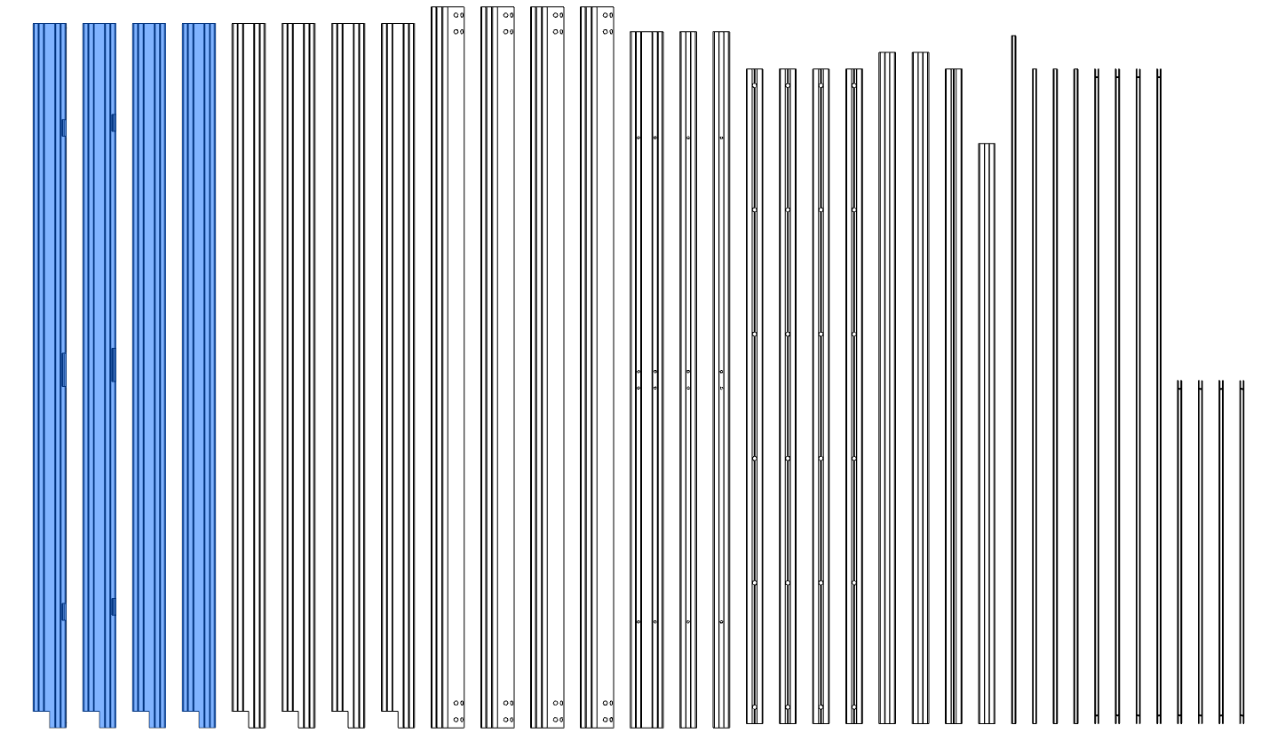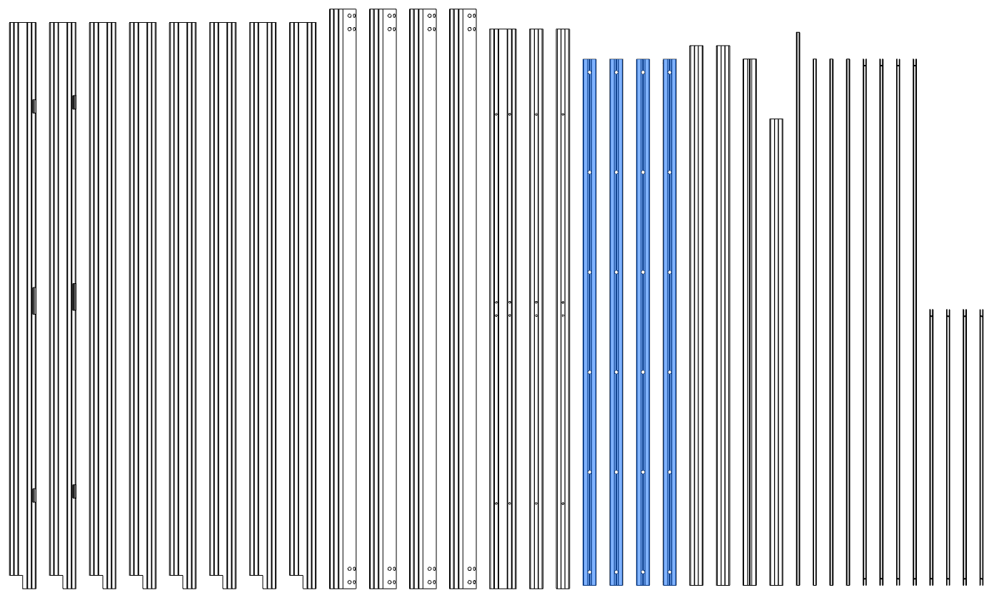 Prepare the first 8 aluminum profiles that will be used in this section;