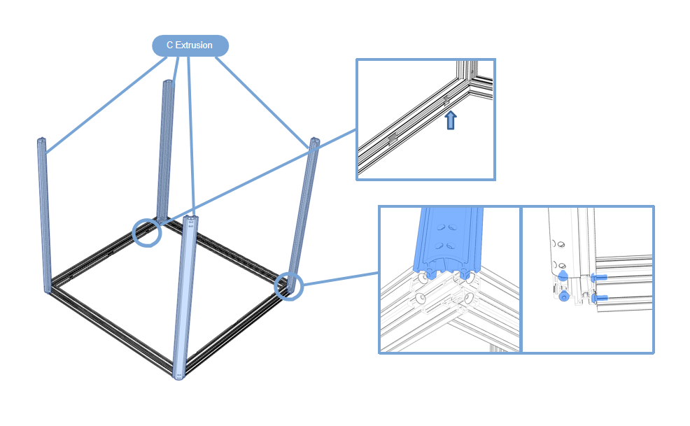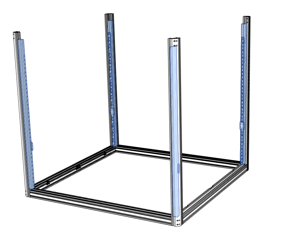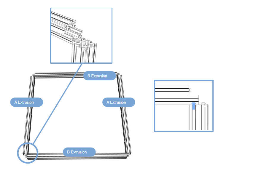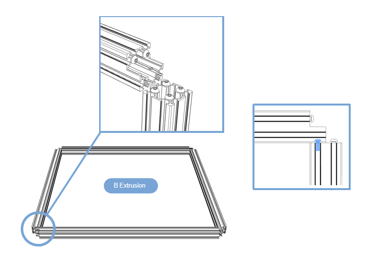Build the frame on a flat surface(build the frame on glass or granite surface) to ensure you get as flat and square a frame as possible;Take out the 4 pieces shown in the picture from the 8 profiles assembled earlier, connect them end to end, with the end faces facing outwards, and tighten the screws.