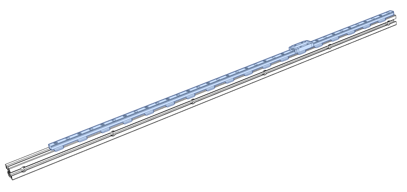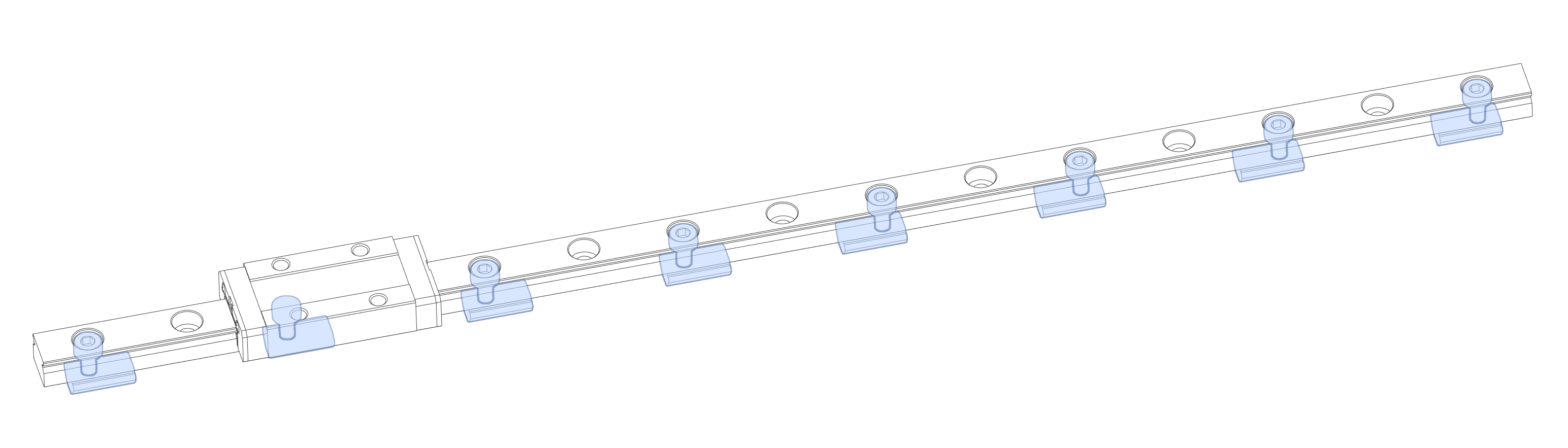 We opted to skip every other mounting hole in the linear rail when designing the mounting pattern for this printer. This cuts down on mounting hardware and still meets the requirements for our use case.When tightening the bolts tighten them from the center outward to ensure that the rail sits flush on the extrusion.