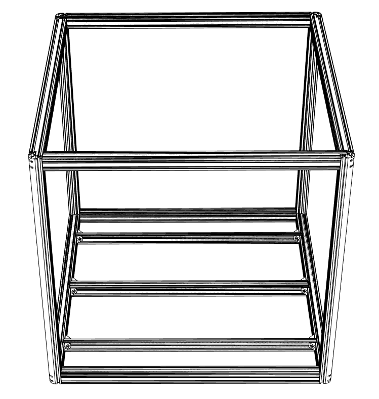 Build the frame on a flat surface(build the frame on glass or granite surface) to ensure you get as flat and square a frame as possible;Take out the 4 pieces shown in the picture from the 8 profiles assembled earlier, connect them end to end, with the end faces facing outwards, and tighten the screws.Repeat the previous work.