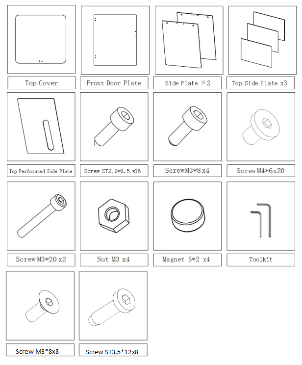 Note: Due to possible variations or differences in screw types, the actual accessories may differ from the images. Please refer to the actual accessories.