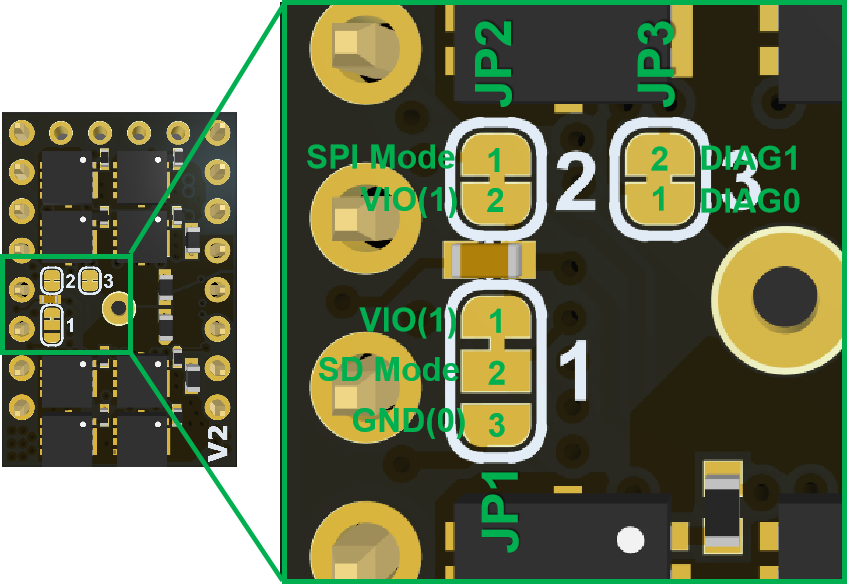 2.Add jumpers DIAG0 and DIAG1 (JP3) for serial communication selection.